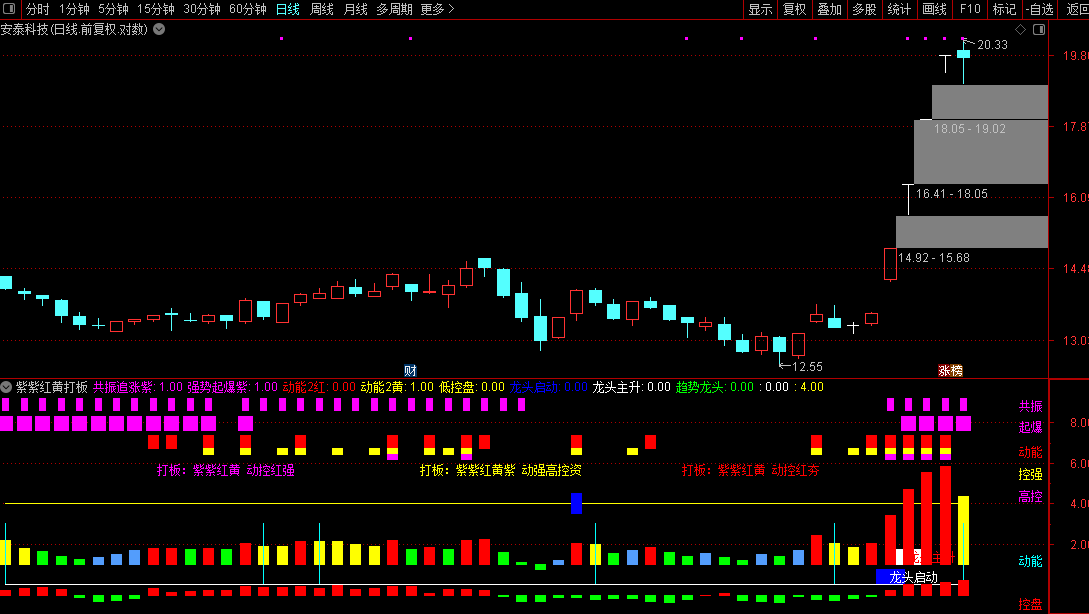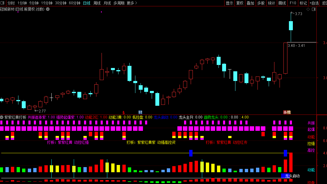 高级打板【紫紫红黄打板】动能资金控盘起爆全方位综合游资副图指标源码