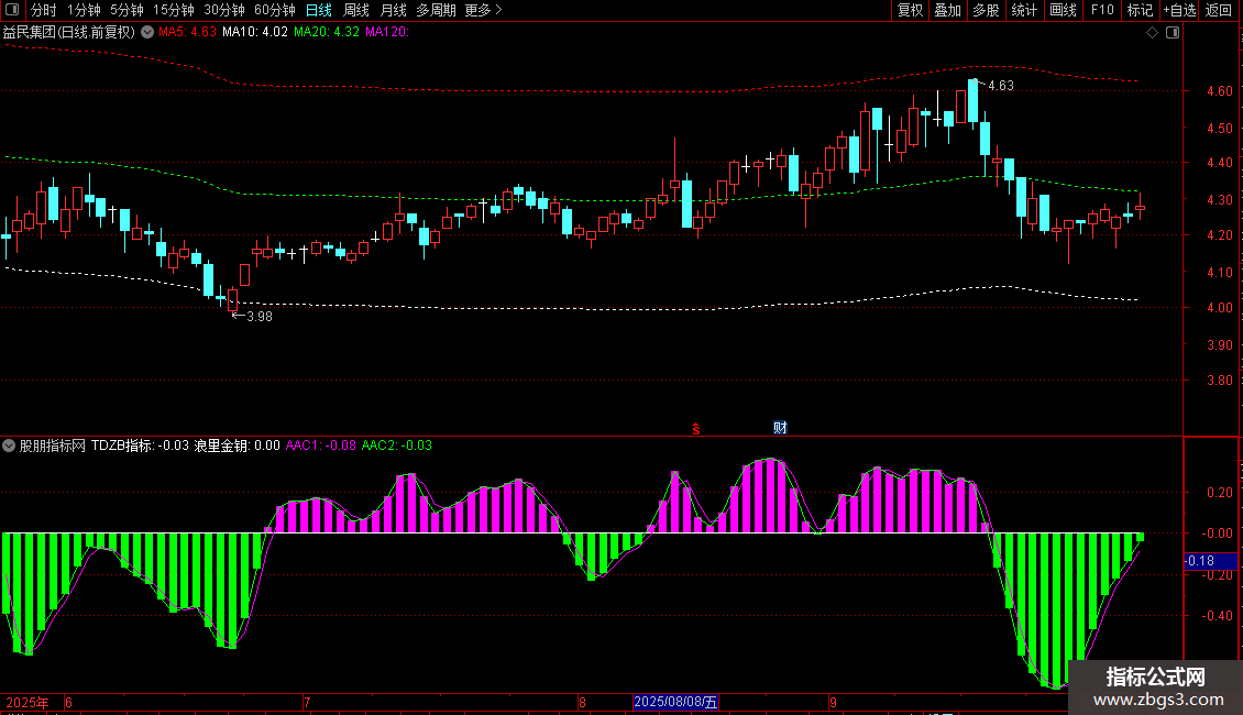 TDZB指标:(ZYG4-REF(ZYG4,1))/REF(ZYG4,1)*100;