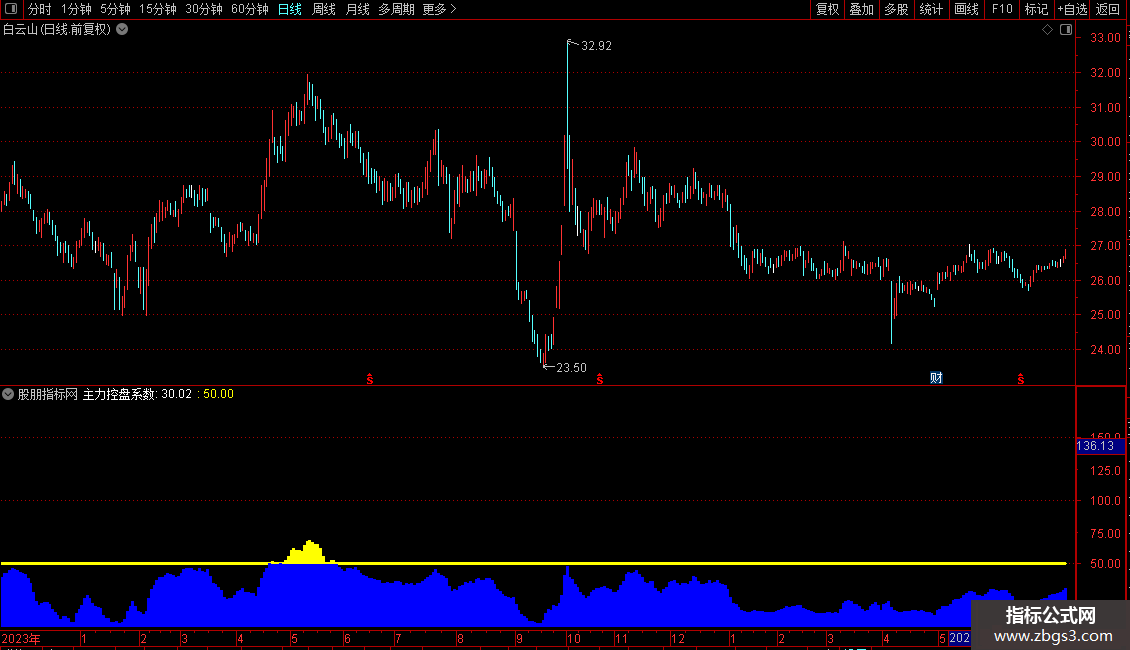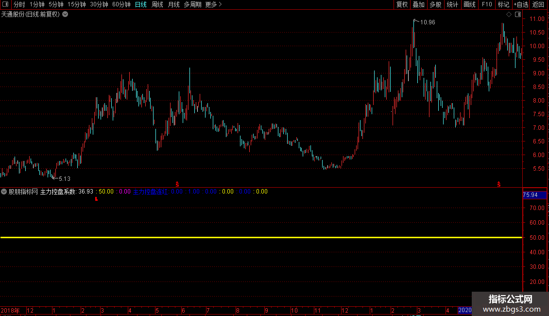 主力控盘连红:STICKLINE(ZZLKP>=75,50,0,2,0),COLORBLUE;