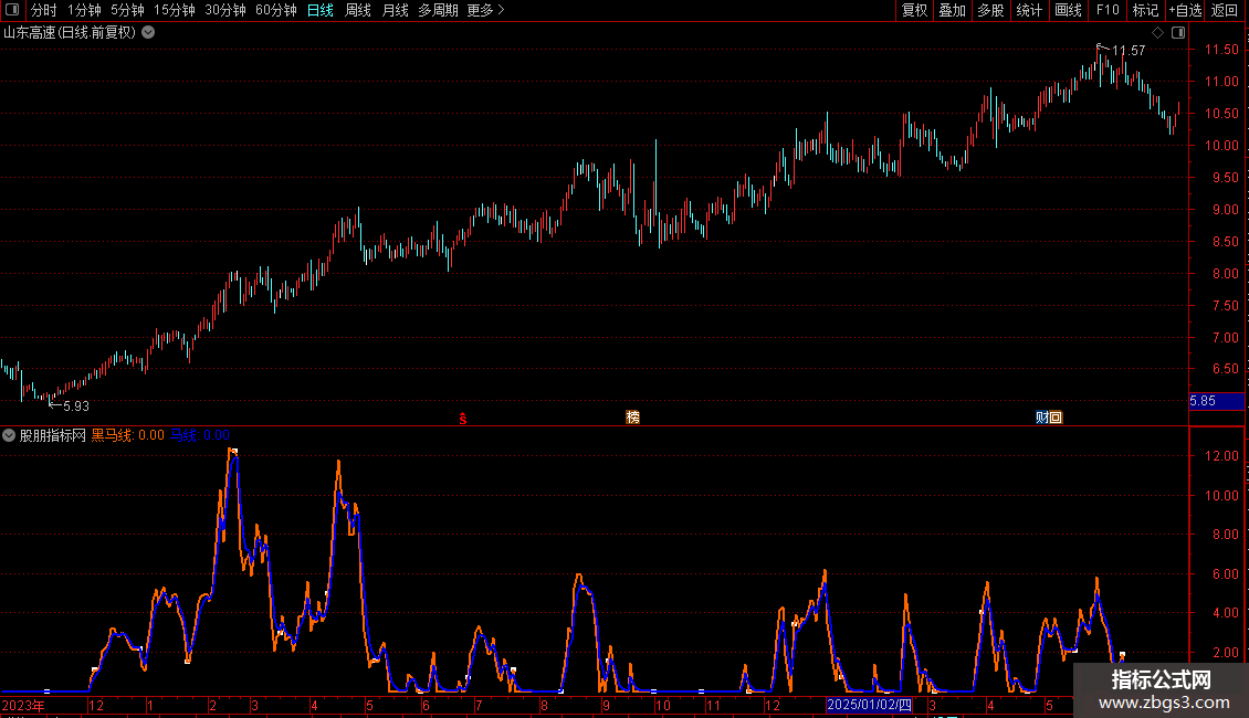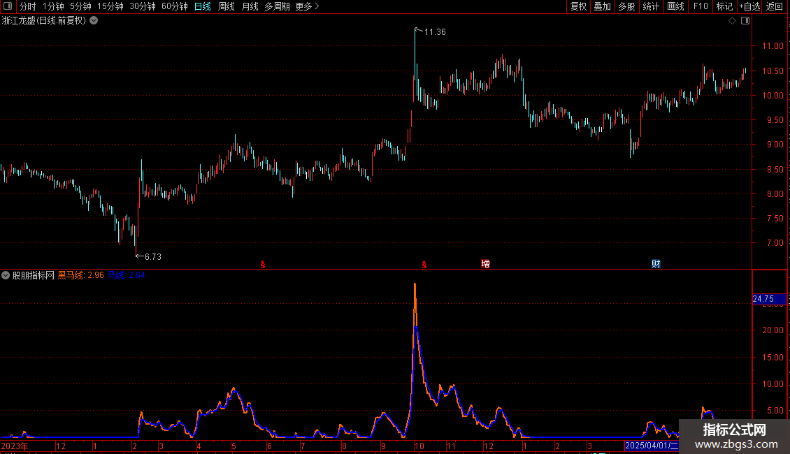 黑马线:IF(LS28>0.1,LS29,0)*5,COLOR0066FF,LINETHICK2;