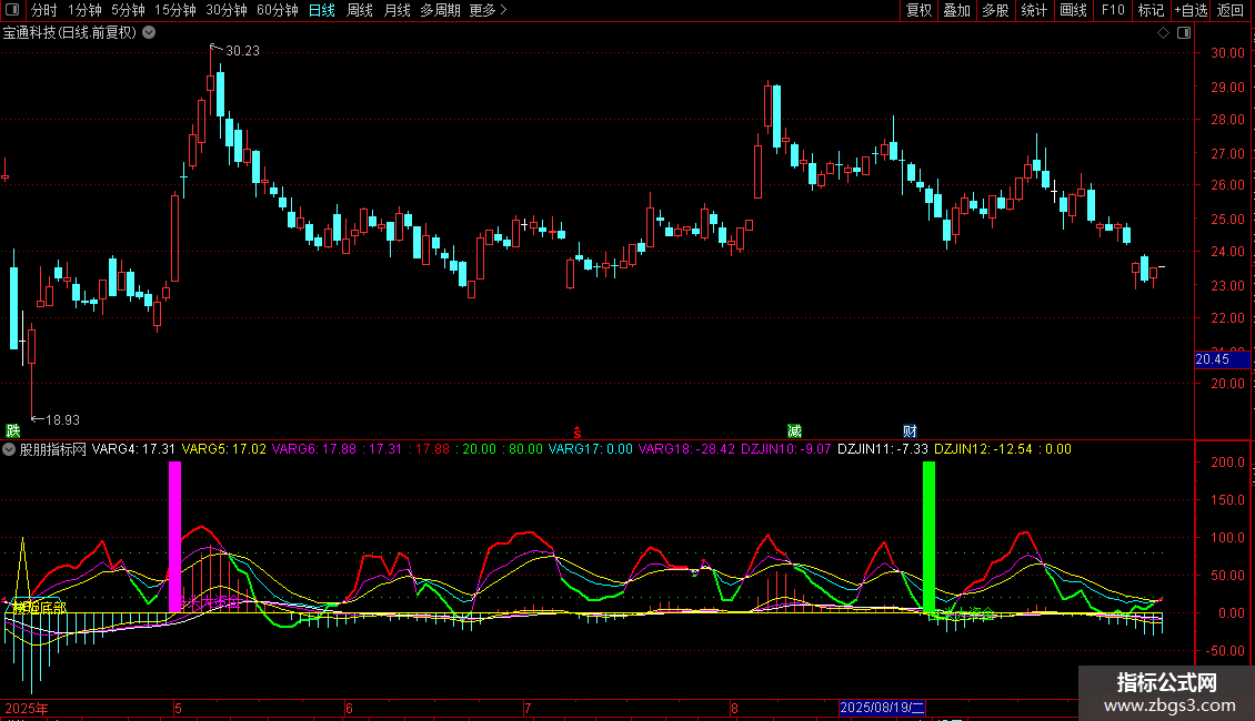 STICKLINE(DZJIN19 AND COUNT(DZJIN19,30)=1,1,200,5,0),COLORFF00FF;