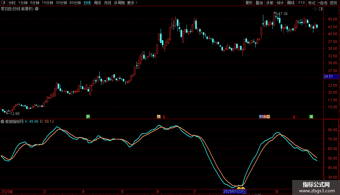 买入:=CROSS(J,D )AND CROSS(J,K)AND K <40 AND D<50 AND J<50;