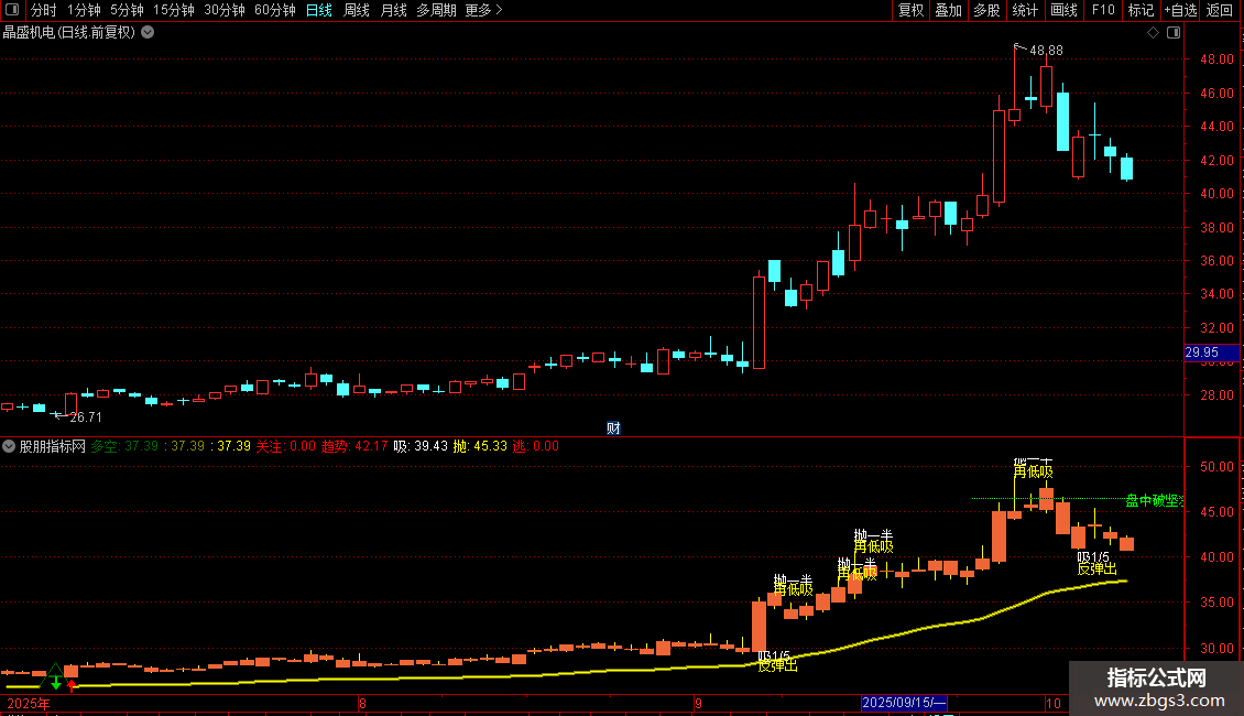 该指标凭借多空通道、趋势强度、精准信号点构建的三维框架,把复杂趋势判断化作直观图形语言。“趋势识别 - 买卖点定位 - 仓位管理 - 止损纪律”被其整合成闭环系统,对中短线波段交易者十分适用。运用时要依据个股波动特性调整参数,且严格遵循止损纪律。