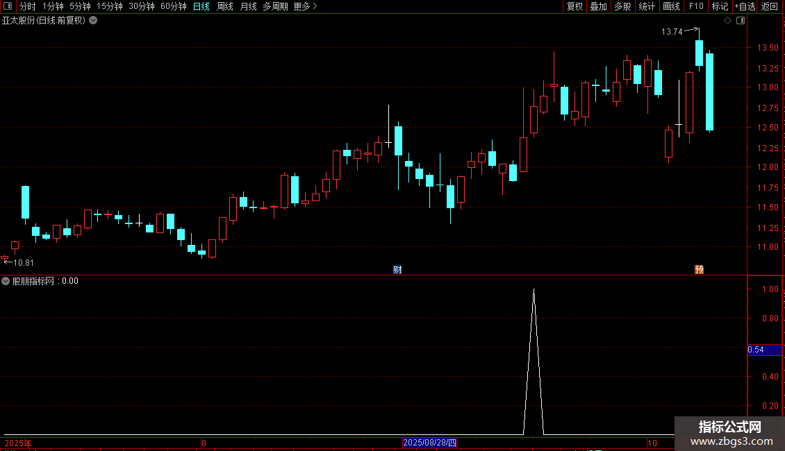 指标主要用于捕捉强势股回调后的二次买入机会。第一部分识别当日股价突破近期高点且收阳线的强势股,第二部分筛选次日回调但未跌破前日高点、维持上涨趋势的标的,同时排除ST股、科创板及高价股。操作策略为:当满足条件时,在股价回调至前日高点下方但高于前日收盘价时介入,结合量能配合更佳。