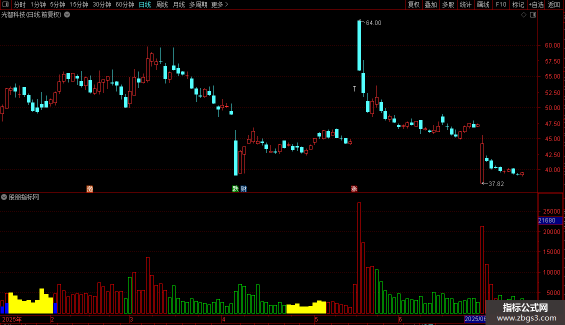 这个主要是用来看成交量的,俗话说抓住量中庄,就坐上了攀升的列车。 成交量中有蓝和黄两种庄影提示,请自行判断。