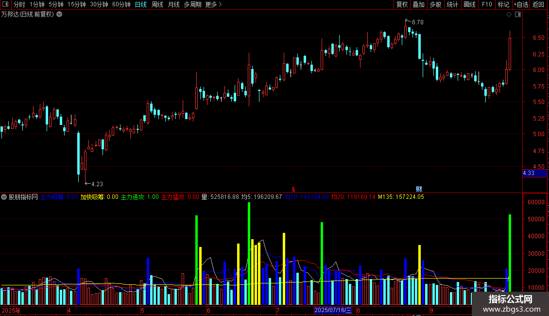 主力进攻:换手率>7 AND 换手率<=10,COLORGREEN;
