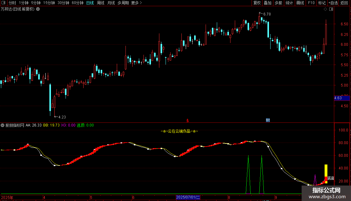 逃顶:IF(FILTER(CROSS(BB,AA) AND AA>80 ,3),60,00),COLORGREEN;