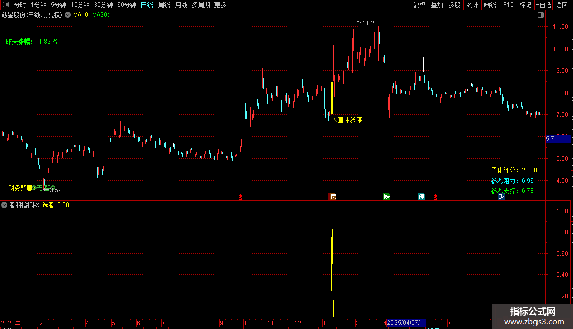 DRAWTEXT_FIX(1,0.07,0.94,1,'财务预警:'),COLORYELLOW;