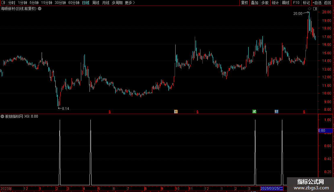 KDD:=REF(中期,1)<1 AND 中期>1;