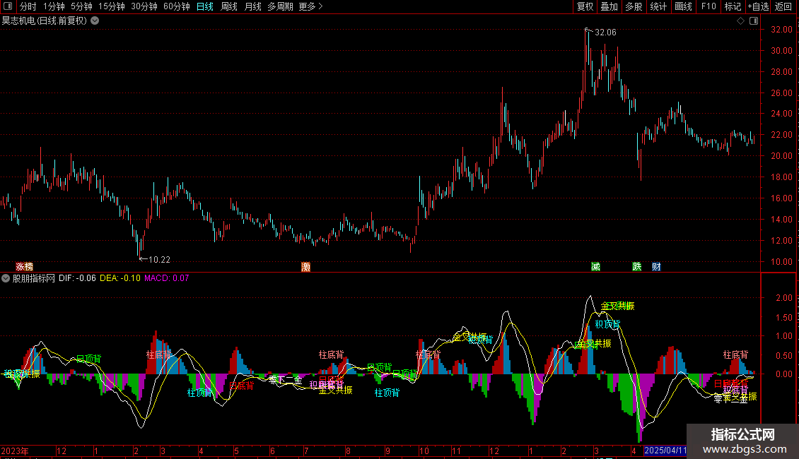 DRAWTEXT(顶背离,DIF*1.12,'日顶背'),COLORGREEN;
