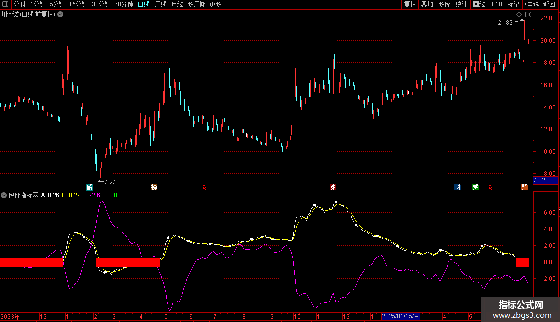 FX:=EMA(MA90-EMA((MA(R*ZL,2)/MA(ZL,2)-MA90),1),2);