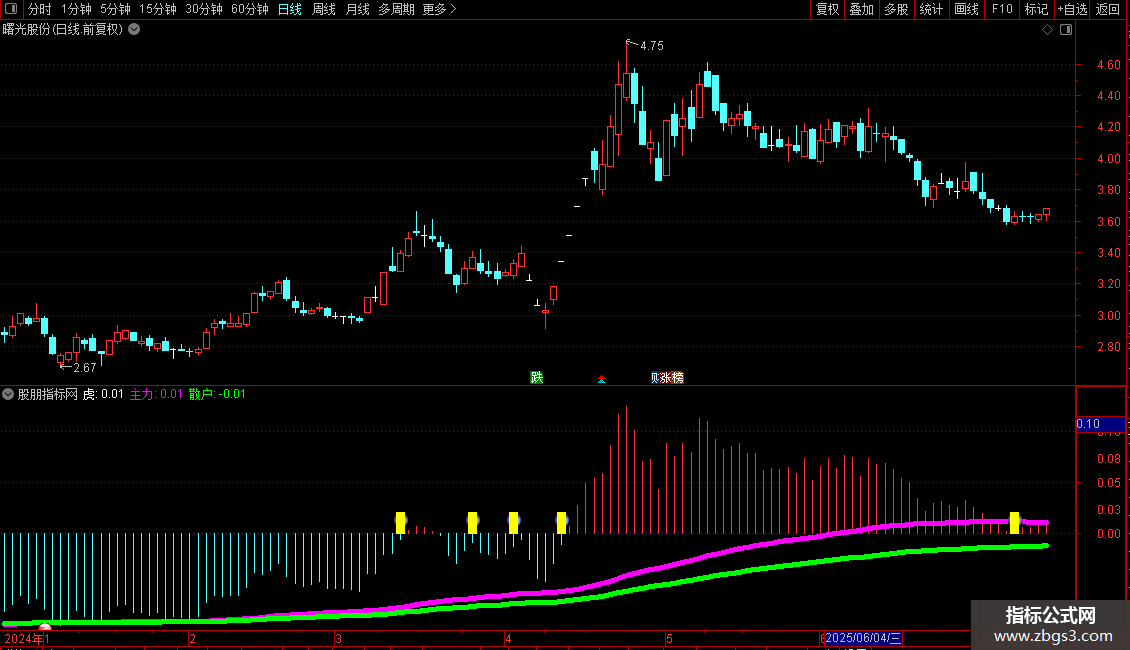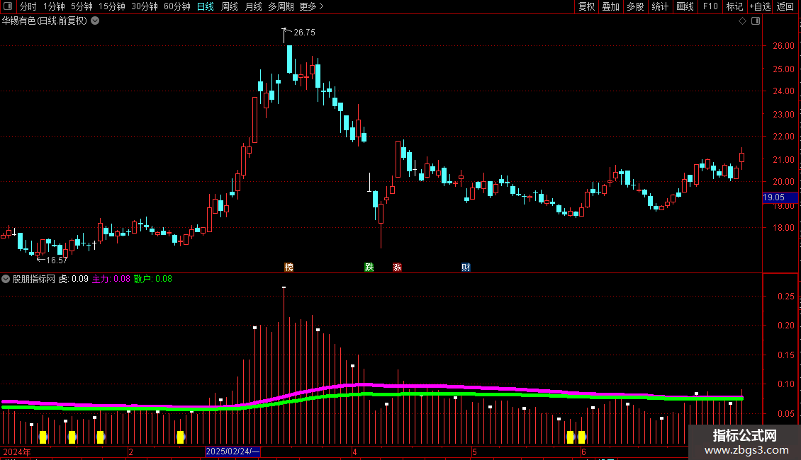 主力:EXPMA( (EXPMA(CLOSE,500)-REF(EXPMA(CLOSE,500),1))/REF(EXPMA(CLOSE,500),1)*100,120)-0.0004,LINETHICK5,COLORMAGENTA;