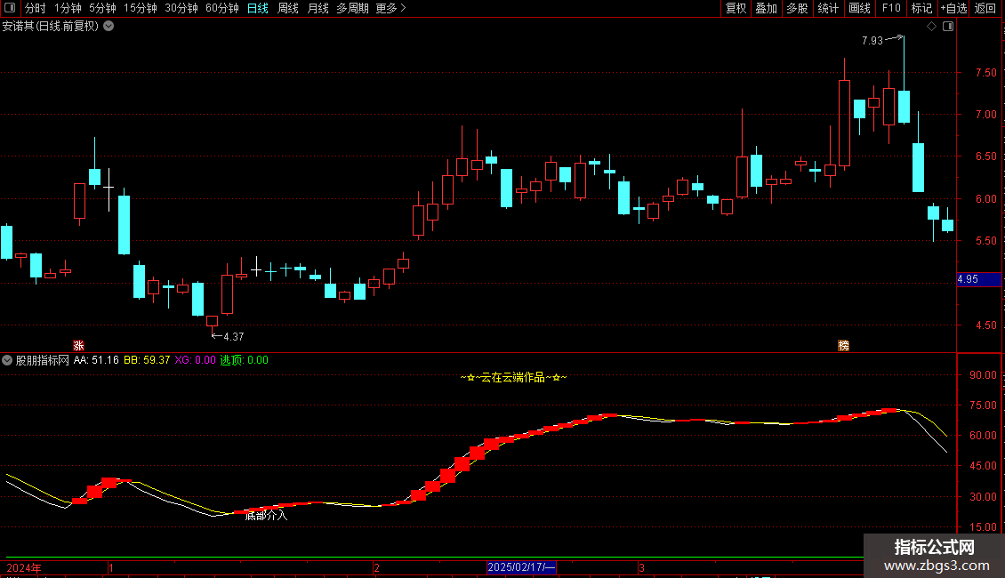 DRAWTEXT(CROSS(AA,22) AND BB<AA,AA-2,'*底部介入');