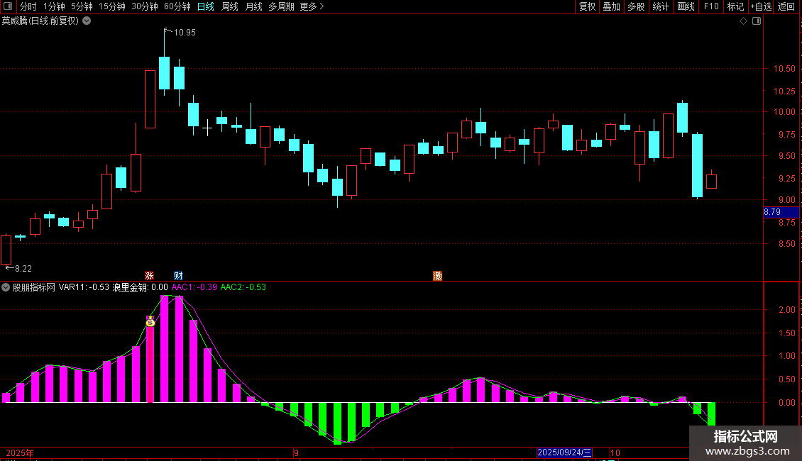 STICKLINE(VAR11>=0,VAR11,0,2,0),COLORMAGENTA;