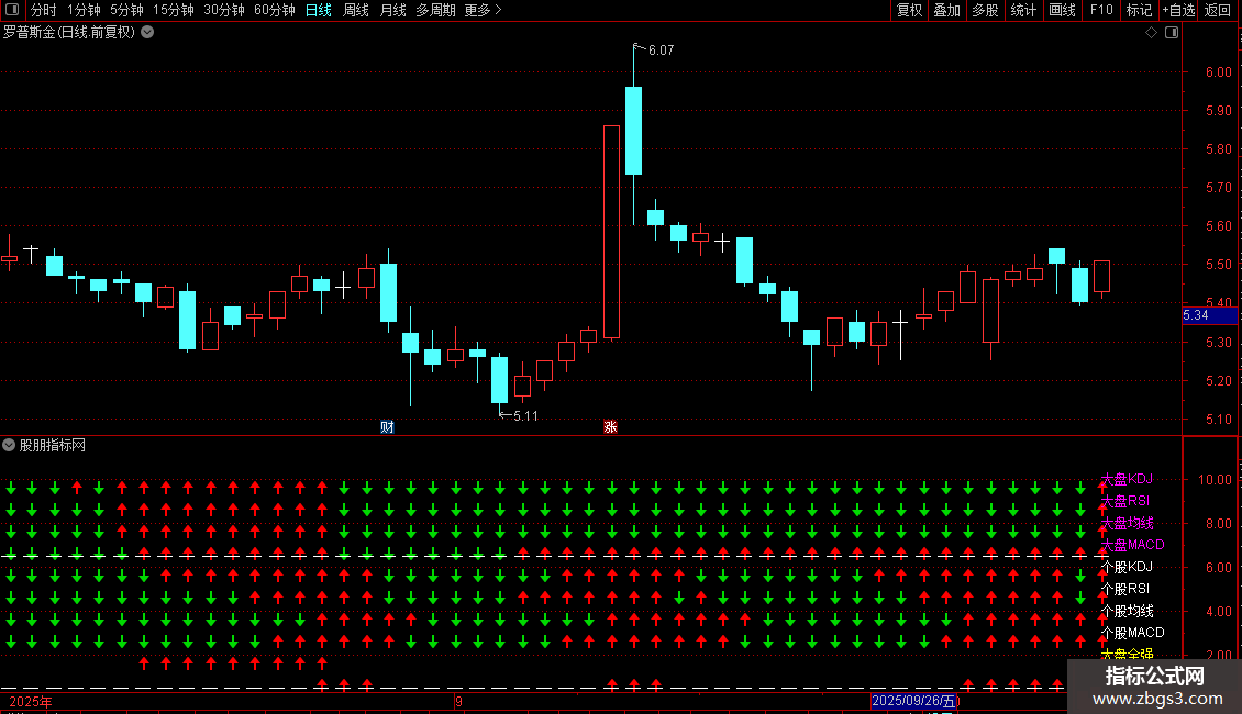 DRAWTEXT(ISLASTBAR,6,'个股KDJ'),COLORWHITE;