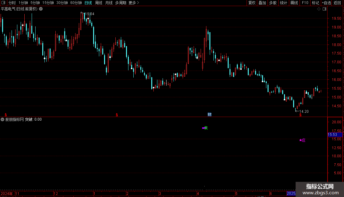 DRAWTEXT(VAR162 AND TIME< 1440,CLOSE,'★庄'),LINETHICK5,COLORMAGENTA;