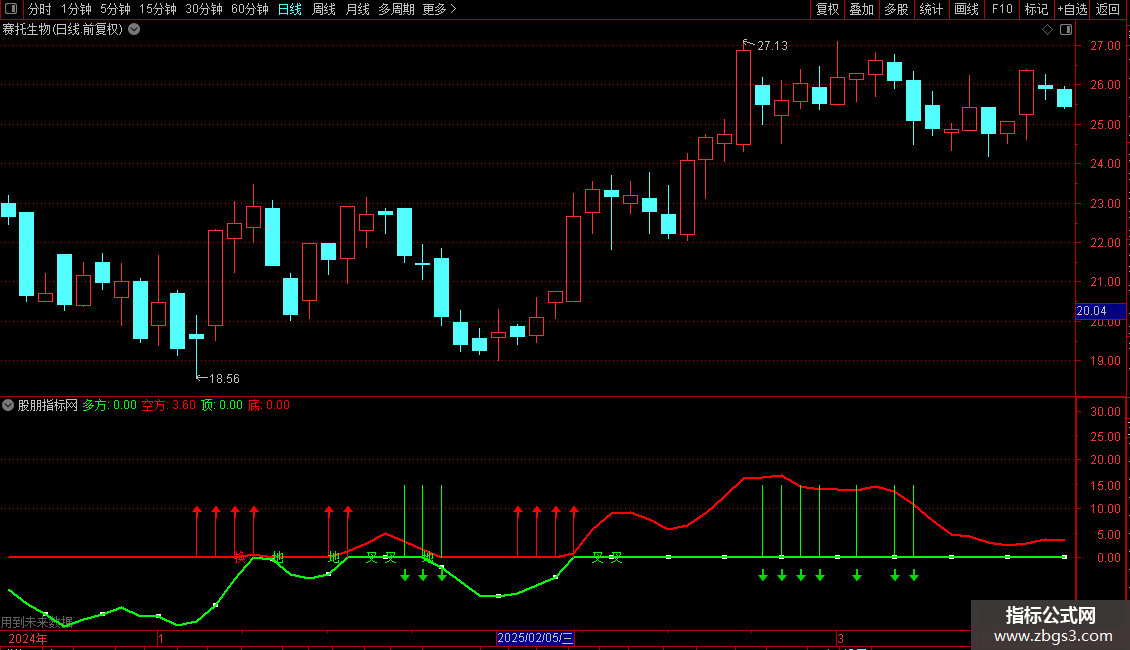 DRAWTEXT( DIFF+0.025>DEA AND BIAS25<2 AND HH AND V=LLV(V,5),多空平衡,'地'),COLORGREEN;