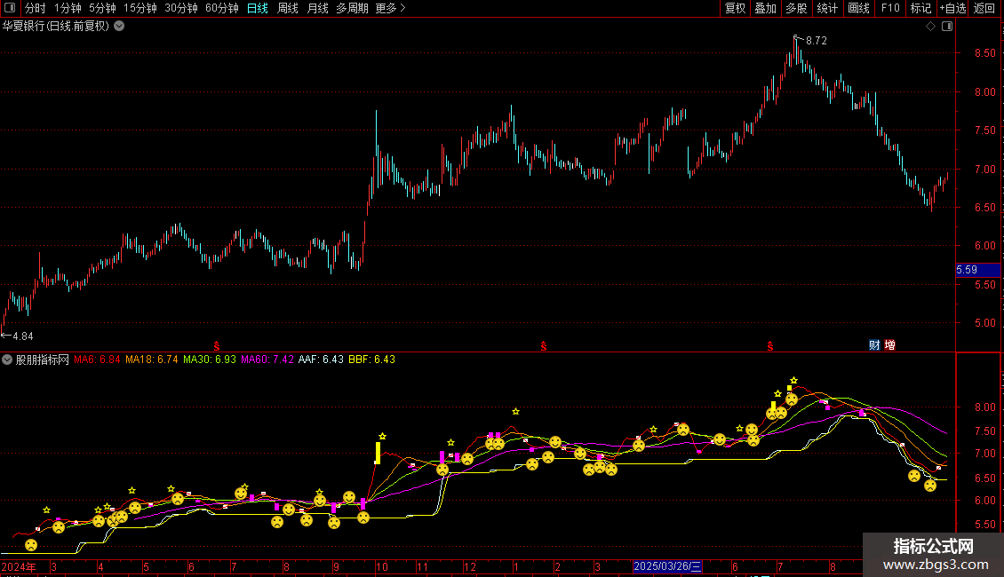 DRAWICON(CROSS(操盘线,V5) AND MA6>REF(MA6,1),L,4);