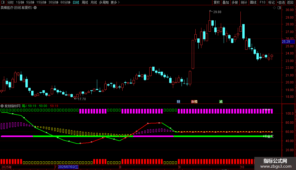 指标通过计算价格波动来识别市场买卖时机。它主要分析三条曲线的关系:当快线从下向上穿过慢线时产生买入信号,反之是卖出信号;同时关注另一条辅助线的拐点变化来确认趋势强度。