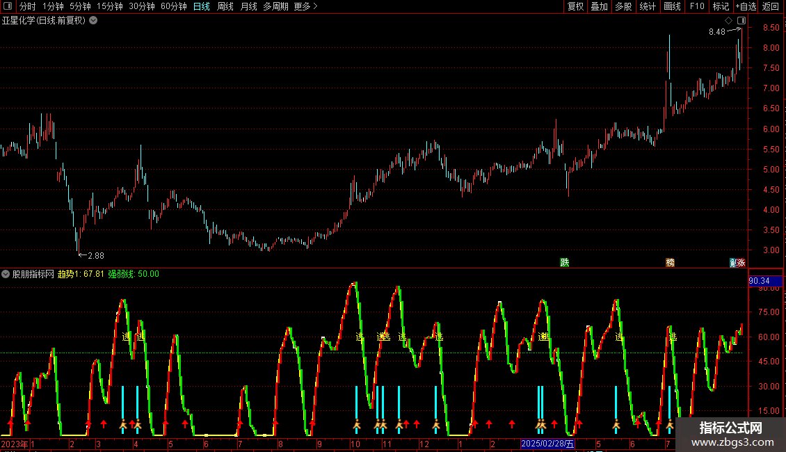 趋势1: IF(VAR6B>45,VAR6B-45,0),COLOR00FFFF,LINETHICK2;