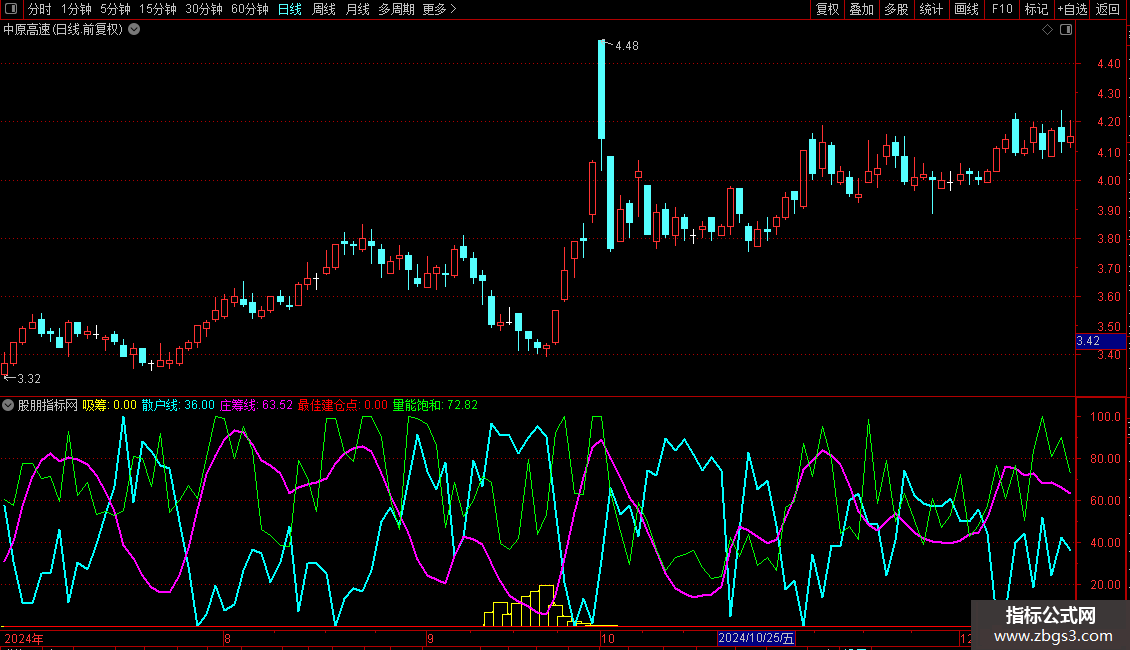 量能饱和:IF((AMOUNT/C)/(HHV(AMOUNT,20)/HHV(C,20))*100>100,100,(AMOUNT/C)/(HHV(AMOUNT,20)/HHV(C,20))*100),COLOR00FF00;