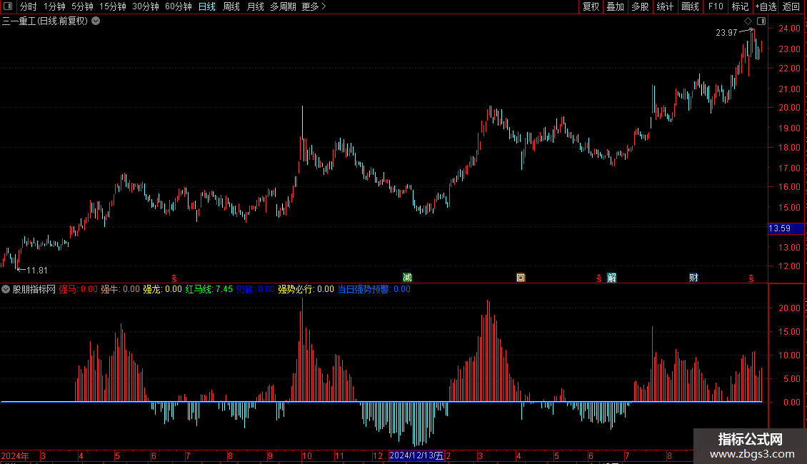 强势必行: IF(FILTER(红马线>0 AND 强马 AND 红马线>0 AND 强牛 OR 红马线>0 AND 强龙,5)=1,30,0),linethick2 , COLORYELLOW;