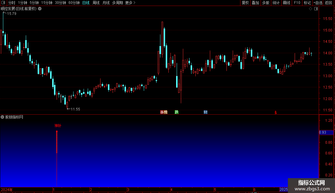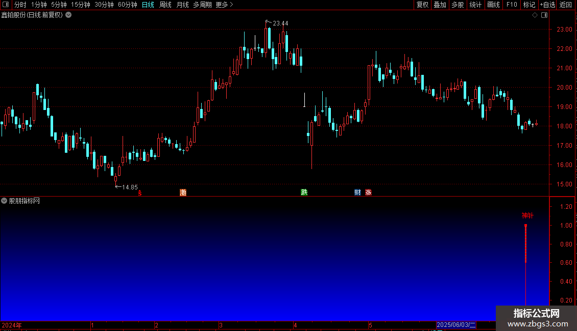 DRAWTEXT(CURRBARSCOUNT=CONST(SJ)+2,1.1,'神针'),COLORRED;