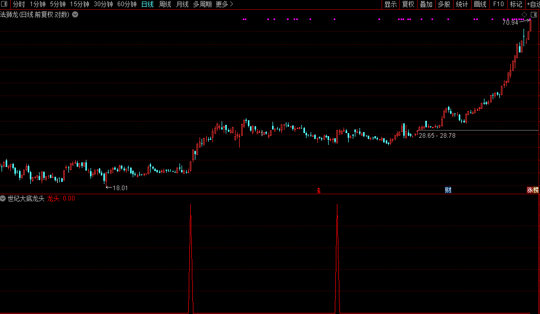 本公式通过多周期技术指标共振识别底部龙头股。