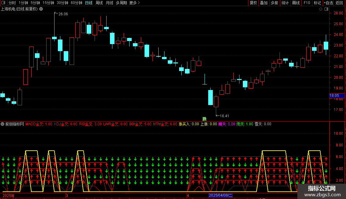 雨天:BARSLASTCOUNT(MACD金叉+KDJ金叉+RSI金叉+LWR金叉+BBI金叉+MTM金叉>0 AND MACD金叉+KDJ金叉+RSI金叉+LWR金叉+BBI金叉+MTM金叉<21 ),LINETHICK0;
