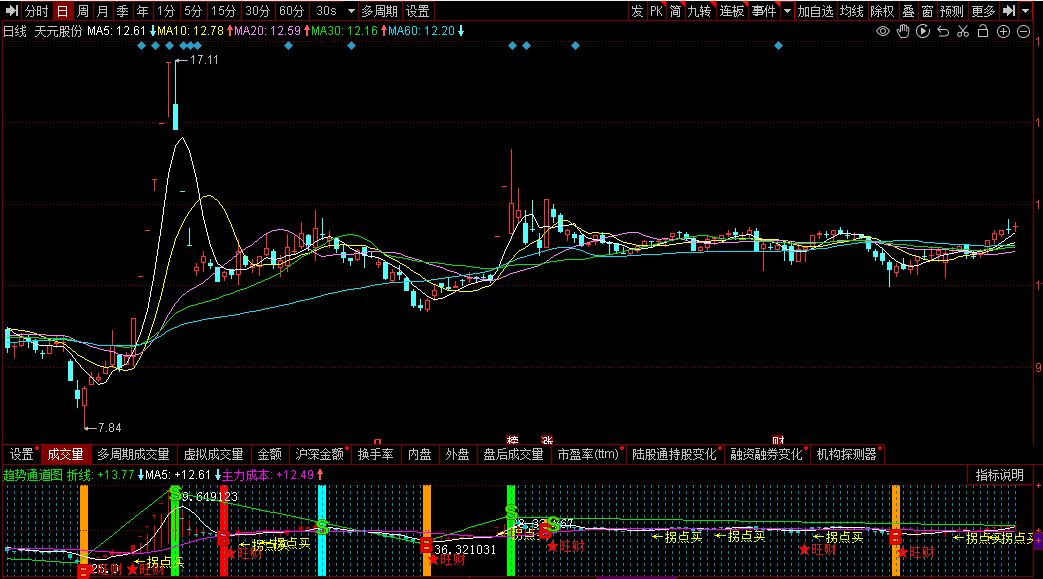 主力成本:EMA(X,13),COLORFF00FF,LINETHICK0;