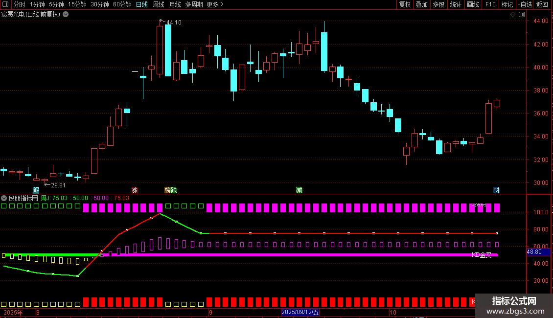 周J:MA("KDJ.J#WEEK"(9,3,3) ,5),COLOR00FF00,LINETHICK2;