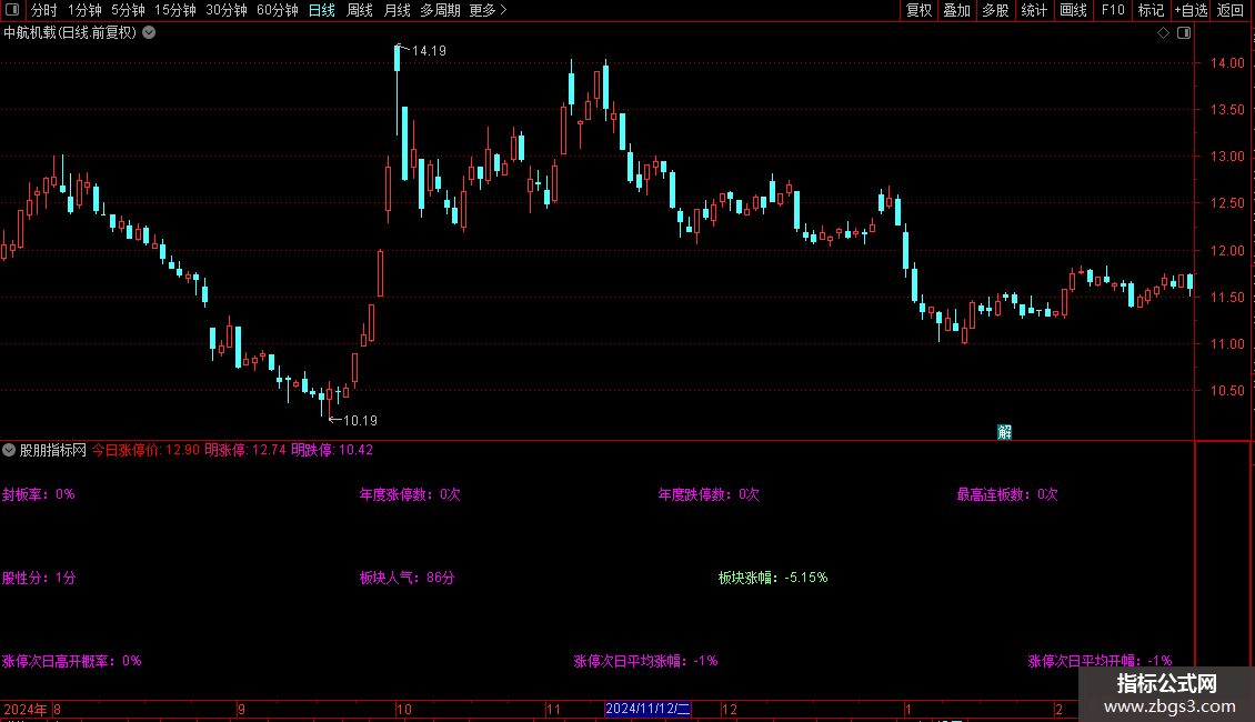 涨停次日收:=IF(REF(C>=今日涨停价 AND L!=C,1), (C/REF(C,1)-1),0);{统计的非一字板}