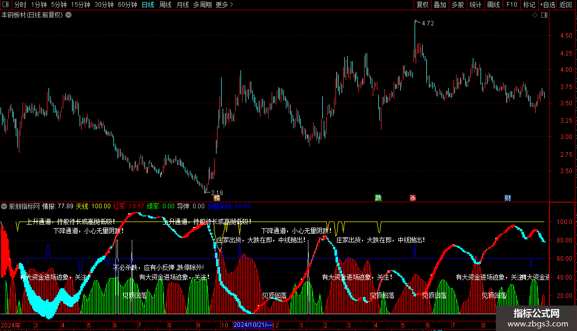 预警系统: IF(VAR7>=200 AND VAR6>=150,15,IF(VAR7<=-200 AND VAR6<=-150,-15,VAR9))+60;