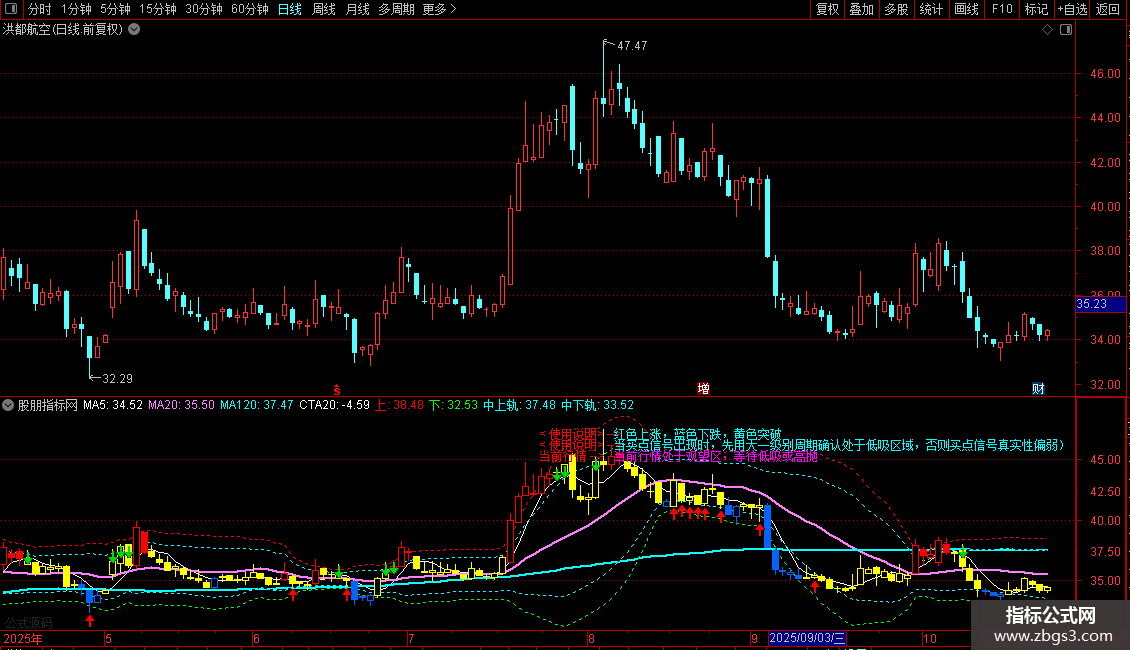下:MA20-2*STD(CLOSE,20),COLOR00FF00,DOTLINE;