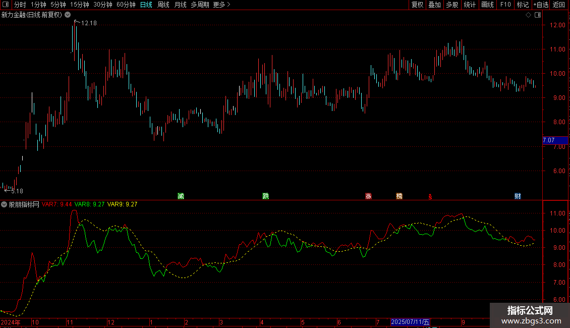 输出VAR8: 如果VAR5输出VAR9: VAR5的N日线性回归预测值的M日线性回归预测值,线宽为1,画黄色,DOTLINE