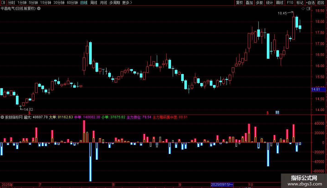 注意:超大、大、中、小单数值,以及主力持仓、主力筹码集中度等数值