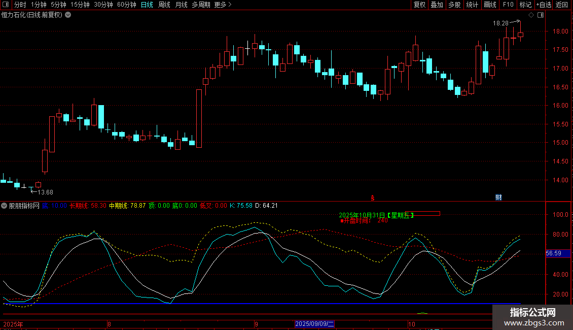 顶:(中期线<REF(中期线,1) AND REF(中期线,1)>80) AND (REF(短期线,1)>95 OR REF(短期线,2)>95 ) AND 长期线>60 AND 短期线<83.5