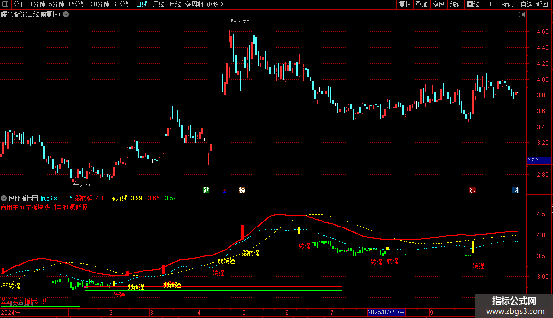 DRAWTEXT(走强,LOW-0.085*LOW,'弱转强'),COLORYELLOW;
