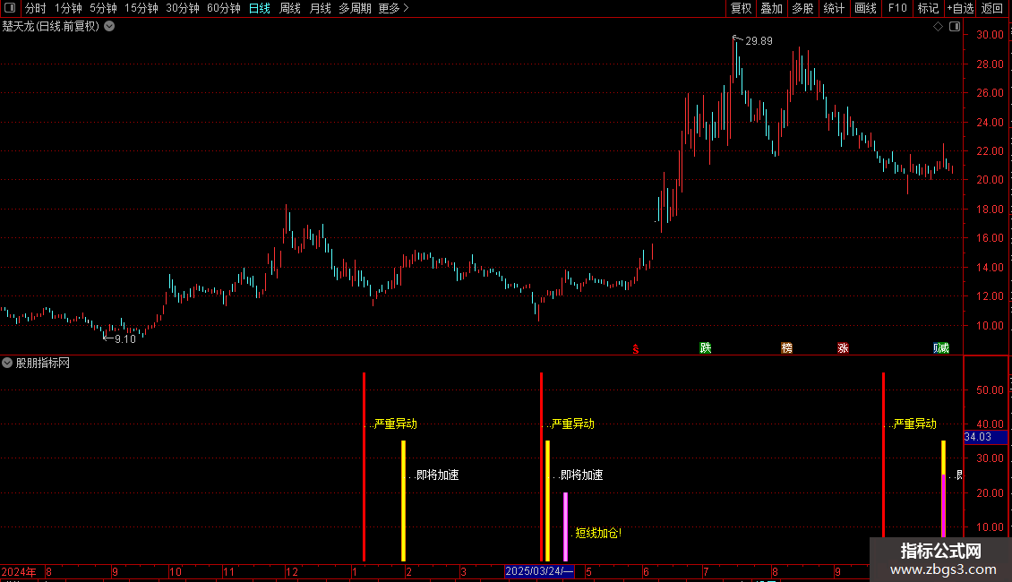 DRAWTEXT(FILTER(VAR1SJ,30)=1,25,'. . .即将加速')*HAN,COLORWHITE,LINETHICK5;