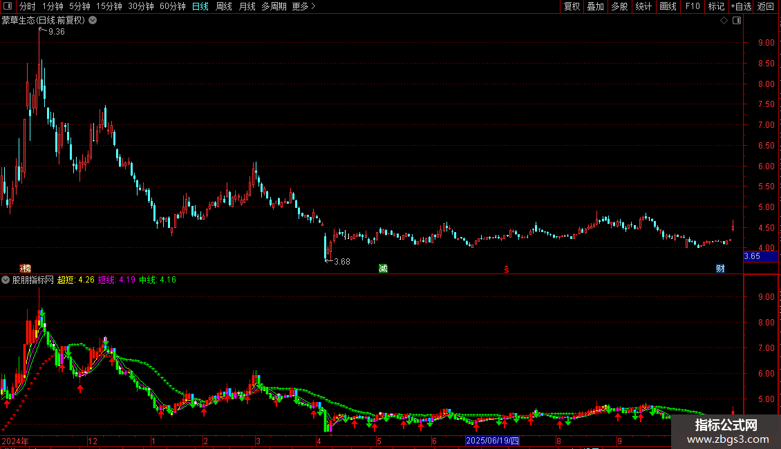 中线:EMA(短线,3),COLOR00FF00,LINETHICK1;