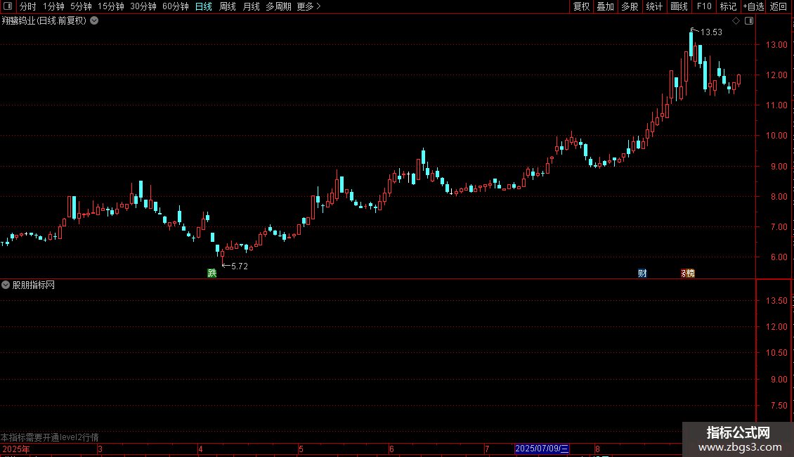 经典KDJ卖:IF(CROSS(经典D,经典K),(H+(H-L)/2),DRAWNULL),CROSSDOT,LINETHICK3,COLOR00CF00;{中绿};