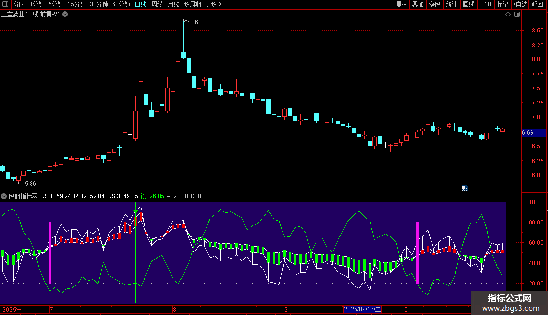 RSI3:SMA(MAX(CLOSE-LC,0),N3,1)/SMA(ABS(CLOSE-LC),N3,1)*100,COLORFFFFFF,LINETHICK1;