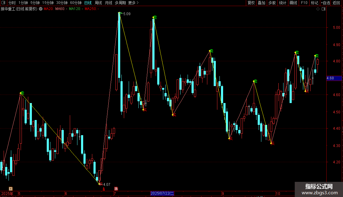 局部极点:IF(极点保留=-1,L,IF(极点保留=1,H,DRAWNULL)) CIRCLEDOT COLORYELLOW;