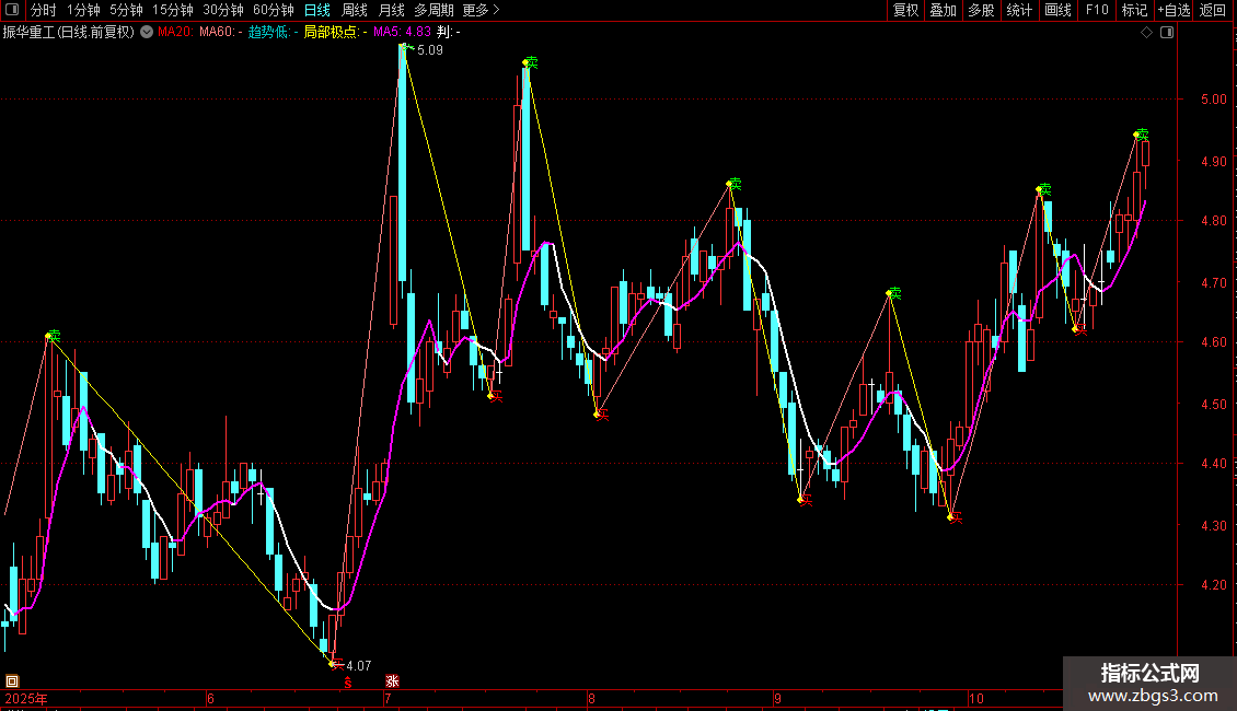 局部极点:IF(极点保留=-1,L,IF(极点保留=1,H,DRAWNULL)) CIRCLEDOT COLORYELLOW;