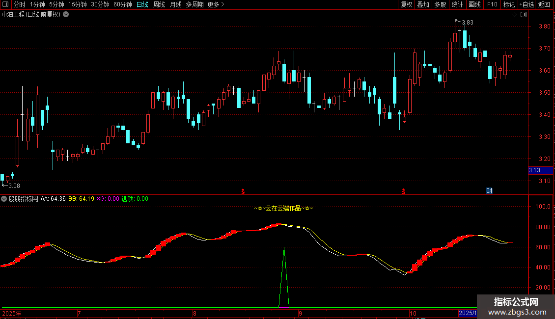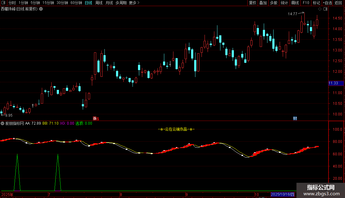 逃顶:IF(FILTER(CROSS(BB,AA) AND AA>80 ,3),60,00),COLORGREEN;