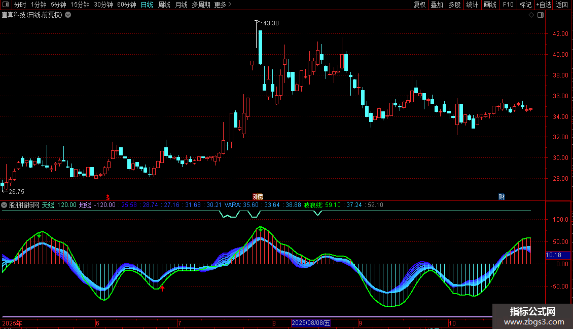 波浪线:SMA((VAR11-50)*2,3,1)+SMA((VAR10-50)*2,3,1)/2,LINETHICK2,COLORGREEN;
