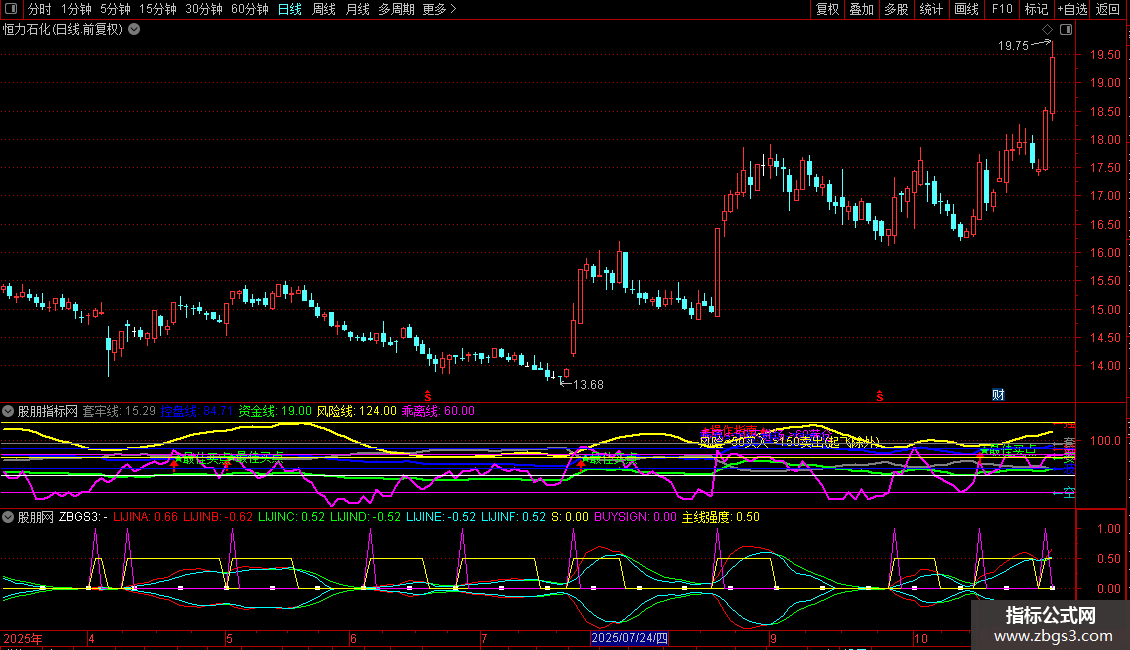 幅图指标是通达信兼容的画线类综合分析工具,围绕 “筹码状态、主力控盘、资金强度、风险等级、趋势乖离” 五大核心维度,通过信号线、分界线和动态标注,量化市场多空力量,提供明确的买卖点和仓位管理规则,适用于日线级别波段操作。