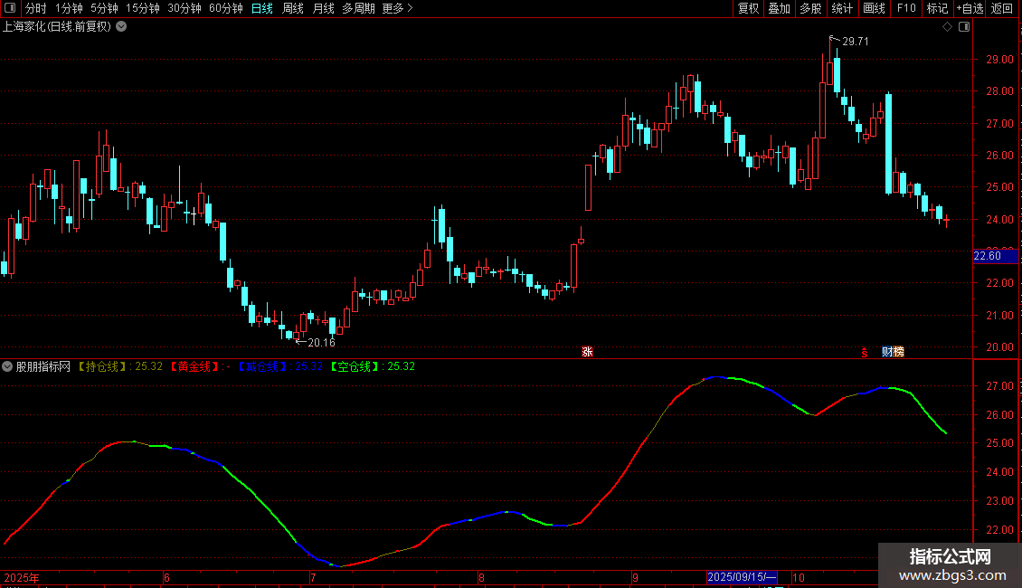 【减仓线】:IF(抛物线>C,【持仓线】,DRAWNULL),COLORBLUE,LINETHICK2;