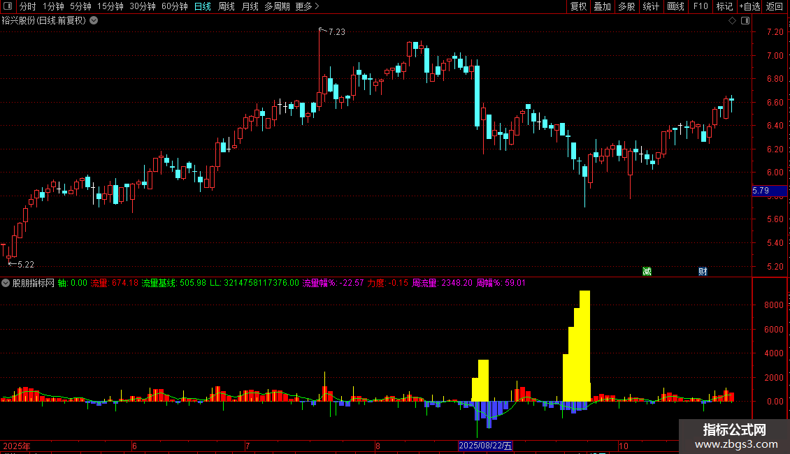 ZC_2赋值:以成交量(手)/当前流通股本(手)为权重ZC_1的动态移动平均*100