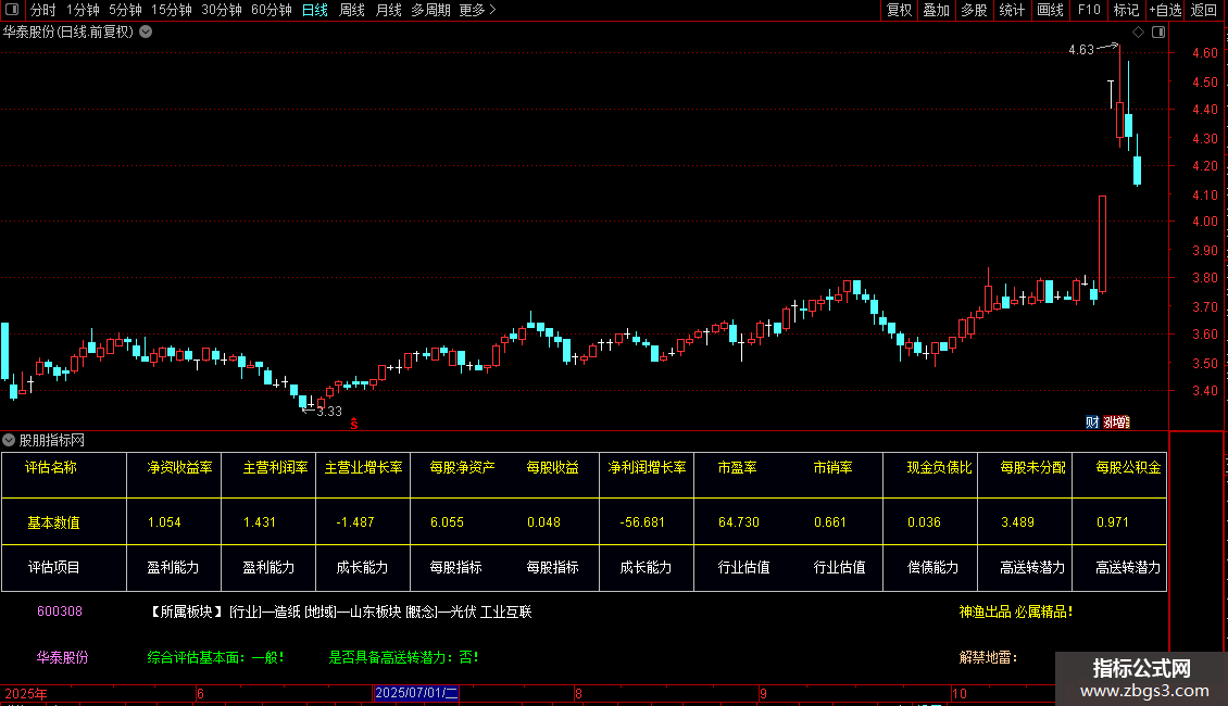 DRAWTEXT_FIX(CURRBARSCOUNT=1,0.855,0.46,0,'高送转潜力'),COLORWHITE;